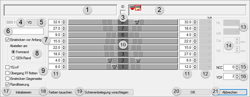 19 | Schienenbelegung vorschlagen | Dialog zur Berechnung der Fadenführer-Belegung öffnen