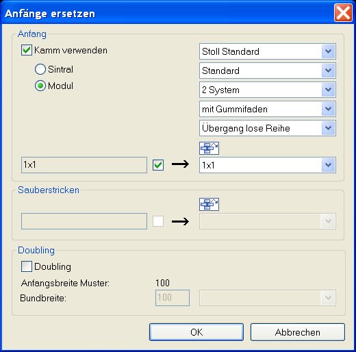 Bei Maschinen ohne Kamm Funktion definieren.