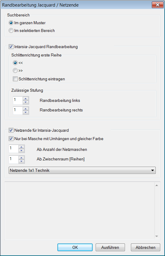 - Über Menü den Dialog Randbearbeitung Jacquard / Netzende öffnen.