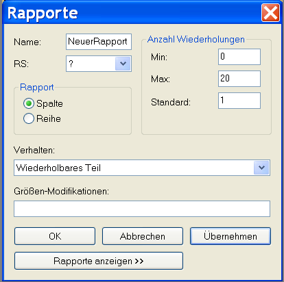 - Die Angaben in der Rapport-Tabelle bei Bedarf durch Anklicken ändern.