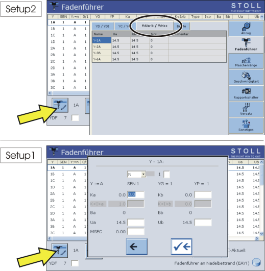 Die Werte Ua und Ub sind wichtig für das korrekte Abstellen der Fadenführer: