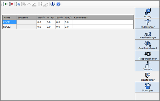 - In den Technikreihen, in welchen der Schuss-Einstreifer aktiv ist, die gewünschten ESCI-Indizes eintragen.
