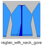 - Raglan with neck gore, which reaches into the sleeve area