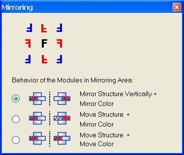 Select the options for mirroring of the modules within the selection in the Mirroring dialog box.
