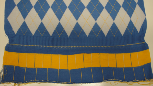 Knit an ornamental stitch line with all the Intarsia yarn carriers used in the pattern to check the correct stopping position quickly and easily.