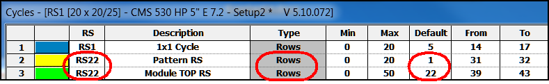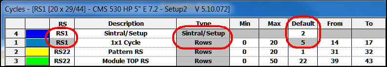 - Type: If there are same cycles of different types, only the cycle of the type Sintral/Setup will be written into the Cycles table. The cycle of the row type will continue being listed but its value will appear greyed out and thus it will not have any effect.