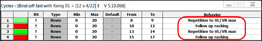 - Repetition to VL / VR max., technical rows 8-9 and 13-14
