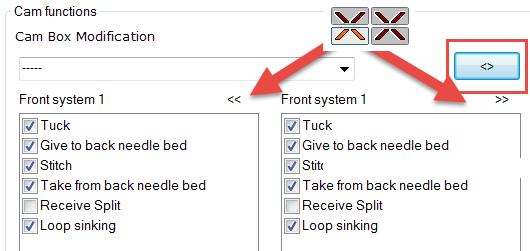 tuck in front(G)= holding-deep and rear stitch(A)- You can configure system functions according to the carriage direction.