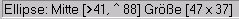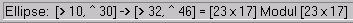 When drawing with the drawing tool Ellipse, the lower left and the upper right position shown are the corner points of a rectangle imaginarily laid over the ellipse.