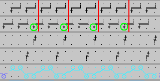 When replacing modules, only complete modules are replaced. This means that the needle actions in the pattern must exactly match those in the module. This is not the case in the following example: