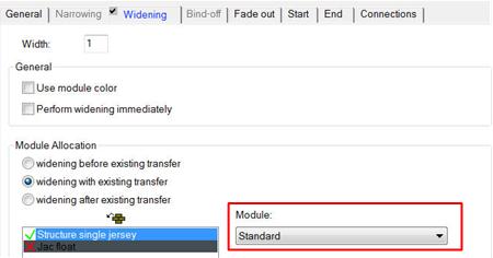 The modules of the standard widening are entered in the entire pattern, the shape edges of the widening are corrected. |
