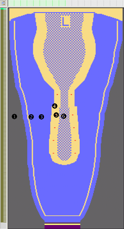 IV. Yarn carrier home position in the Yarn Field Allocation dialog: