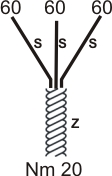 Different yarns: Nm 40 S 800 + Nm 50 Z 900