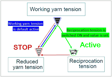 Working yarn tension | Yarn tension reduction | Reciprocation Tension |