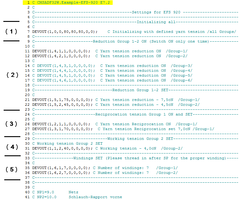 - Open the Function call control column and tag the technical row, from which the new yarn tension is to be used