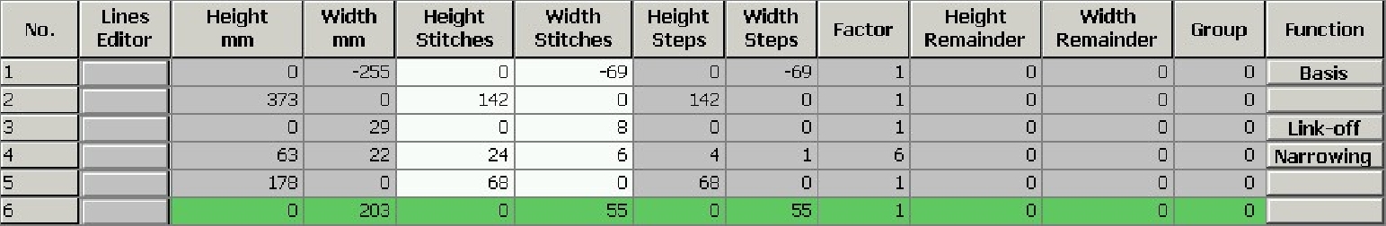Open the Binding-off tab and select the desired binding-off method in the selecting list: