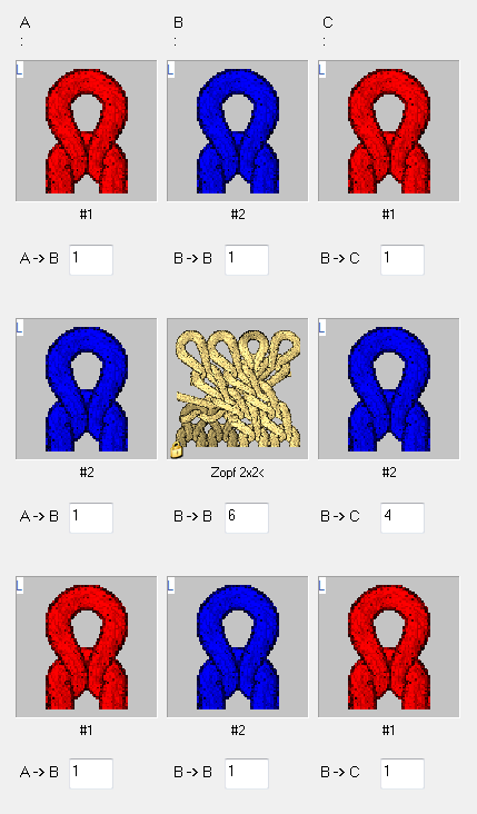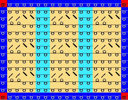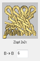 The offset specification for the module Cable 2X2< causes it to be repeated with a horizontal distance of 6 stitches in the pattern.