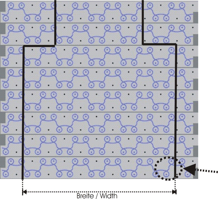 Fading out a stitch at the right outer edge in order to get both edges equal. |