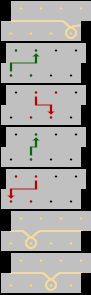 Overlapping insertion of the binding-off modules can be achieved by changing the offset values.