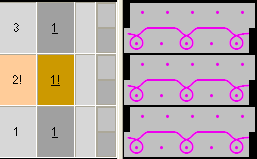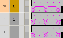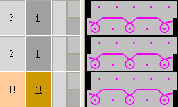 - You can recognize a reference row by the color mark and the ! symbol in the control columns pattern row and technical row.