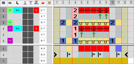 - Insert additional columns in the color segment with the #7 search color (red) for border processing the motif (without a function in the search area).