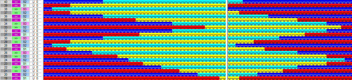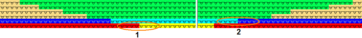 - In the 2nd pattern row (2) of the motif overdraw the yarn color #31 with the plating color P3 and the yarn color #4 with the plating color P4.
