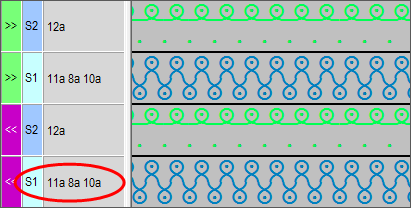 The inserted weft yarn is not visible in the technical view as the the weft yarn carrier Q is defined in the Plating