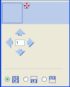 Input of a number (factor): Moving the selected element with each click on a direction arrow by the factor entered |