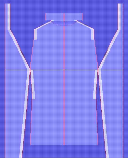 With this setting, the k&w shapes with sleeves folded out are cut from the basic pattern.