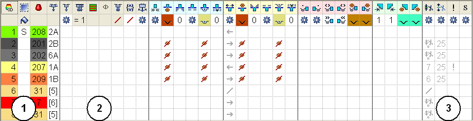 • even (=): The yarn carriers, and with it the bobbins, will be used as evenly as possible.