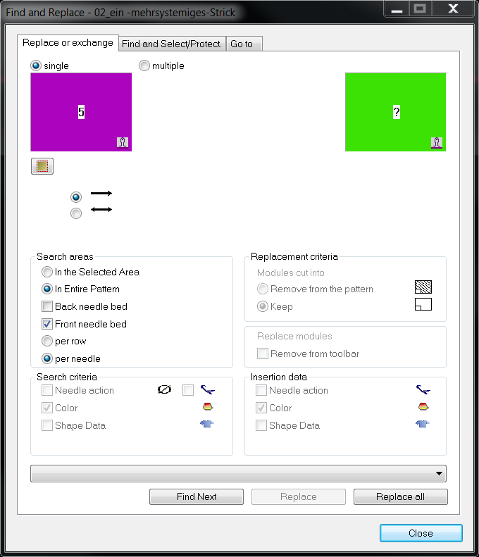 If the area is created via the column selection, it will be necessary to take into account that the stitch length is not changed in the start.