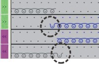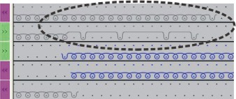 | Feed | If the step on the edge of a color area from one row to the next is greater than specified in the input field, the thread is brought to the start of the following color row by the selected feeding module. | |||