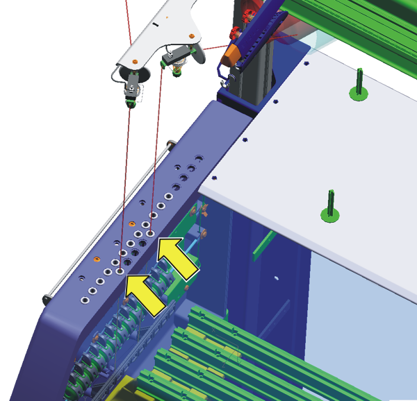 Mount the bobbin holder on the left and right support of the yarn control unit.