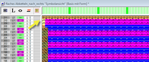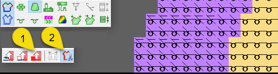 With the (2) option of the Control View (1) toolbars, the pattern will be displayed by shape symbols in the cut out state. Control Views
