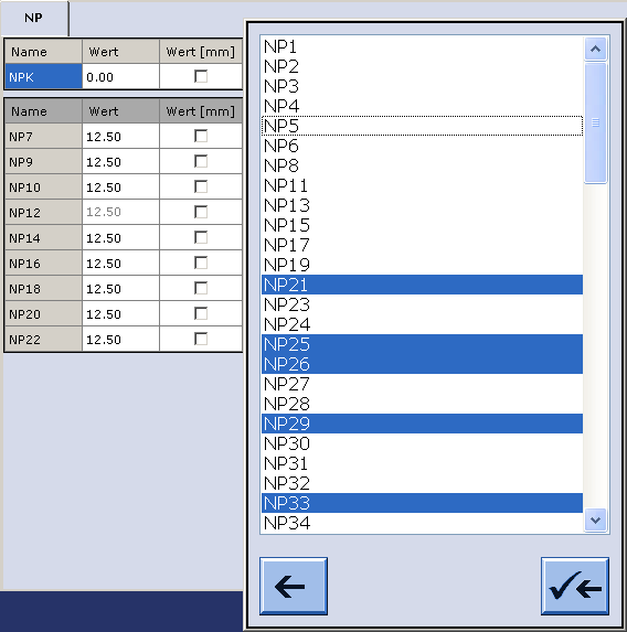 En el diálogo seleccionará de los índices de NP los que aún no fueron entrados en la tabla.