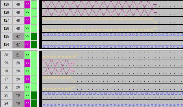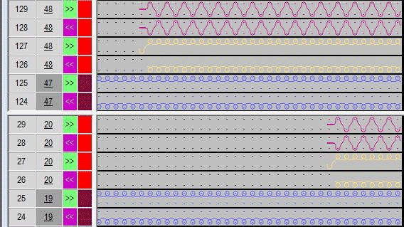 Los sectores de tisaje con inserción para ligamentos en tubular se dibuja con un altura de paso de una pasada de muestra Esto simplifica la creación de la forma.