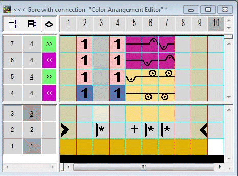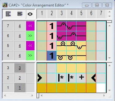 Tisaje con inserción dependiente del carrera del carro editarse los Color Arrangements utilizado.