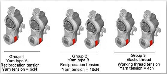 Tensión de hilado en trabajo | Tensión de hilado reducida | Tensión de reciprocado |