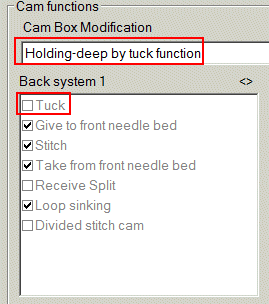 Por este motivo mallas ya tejidas no van a parar detrás de las lengüetas de las agujas. - Solución mediante la función Mantener abajo a través de la función de malla cargada: