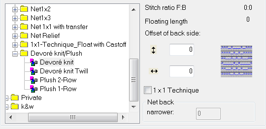 El módulo Jacquard Devoré knit tiene como consecuencia que solo se teja en la fontura posterior. Los sistemas anteriores mantienen sus funciones estándar.