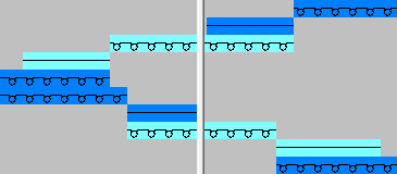 Dos (o más) hilos trabajan juntos en un sector y cambian su posición (posición inicial, posición de vanisado) con cambio de sistema. Resultado: |