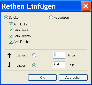 Insertar manualmente los correspondientes k&w Arrangements en las pasadas insertadas.
