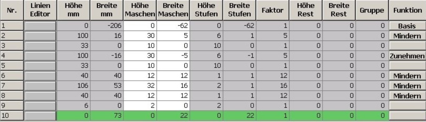 Después del último menguado todavía se deben tejer por lo menos dos mallas; de lo contrario no se ejecutará el último menguado.
