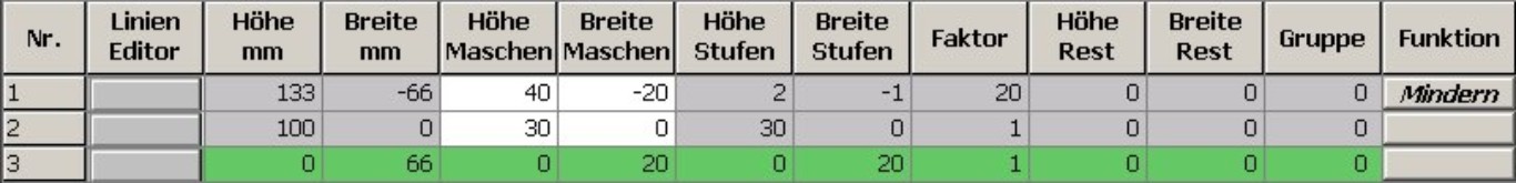 - Crear la tabla y entrar los valores para la pieza delantera / espalda bajo Líneas izquierda.