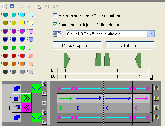 - Debido al cambio de secuencia de tisaje Intarsia a tejer en un sistema no se representará ninguna pasada resuelta al entrar el k&w Arrangement.