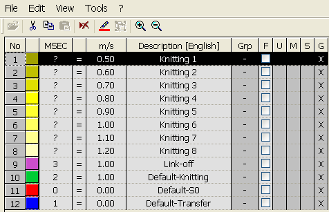 - En la vista de símbolos colocar el cursor en la columna de control para velocidad del carro