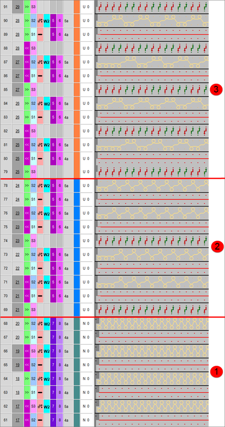 - A continuación seleccionar el sector para la estructura Punto arroz con altura de número par a través de la barra de selección de pasadas