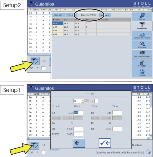 The Ua and Ub values are important for parking the yarn carriers correctly: