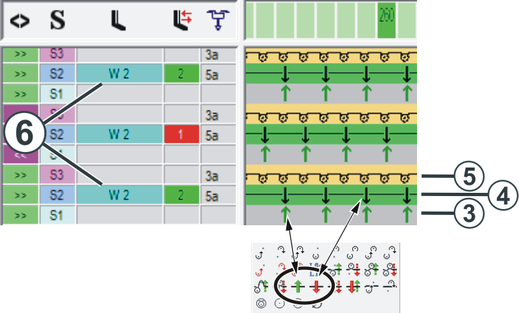 La séquence de tricotage consiste en trois actions qui sont exécutées dans trois chutes de tricotage :