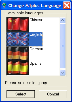 - Le programme Change M1plus Language s'ouvre.